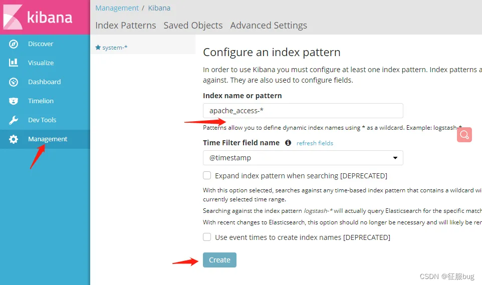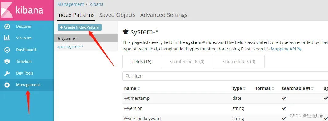 登录Kibana,单击“ Create index Pattern ”