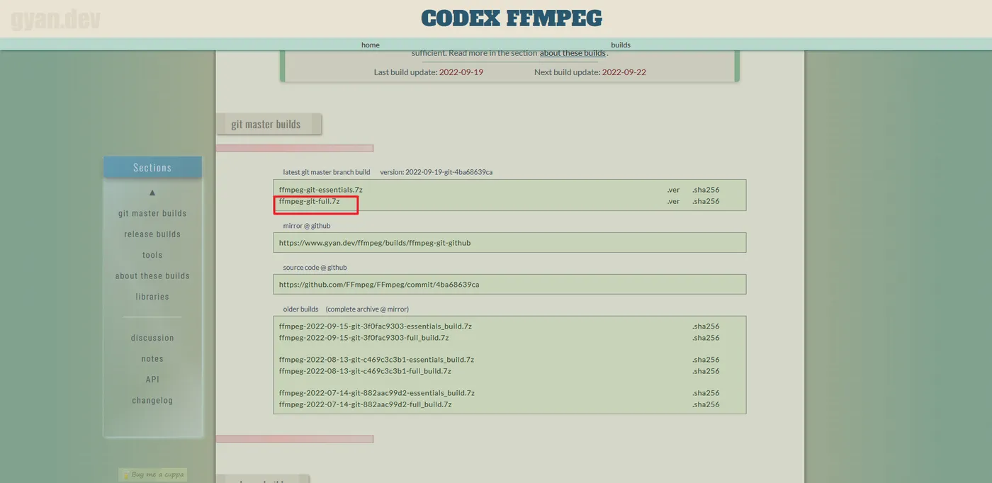 在Builds - CODEX FFMPEG @ gyan.dev下载(我下载的是full所有文件)