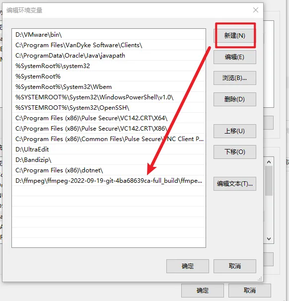 我的路径是D:\ffmpeg\ffmpeg-2022-09-19-git-4ba68639ca-full_build\ffmpeg-2022-09-19-git-4ba68639ca-full_build\bin