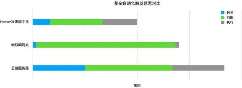 HomeKit 创新性地采用了「家居中枢」作为自动化设备。家居中枢位于同一局域网内,HTTP 请求仅有毫秒级延迟。即使是数年前的 A8 芯片,相比其他智能家居设备所使用的芯片依旧拥有碾压级的性能,完全不用担心并行和复杂逻辑问题。由于操作系统「师出同门」,HomeKit 家居中枢甚至支持「快捷指令」这样高度自由的自动化方案。曾经有朋友吐槽过同样的自动化逻辑使用 HomeKit 这样的「外挂」执行速度竟然快于米家的网关自动化,这正暴露出网关设备的性能不足。HomeKit 自动化「纾解」了网关设备的「非网关功能」,反倒提升了整个智能家居系统的性能。