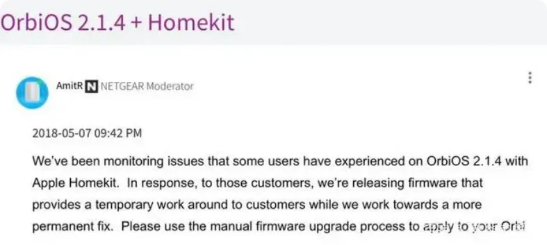 网件 Orbi 路由器曾因为 mDNS 优化算法不佳导致 HomeKit 问题,不得不推出紧急更新|Orbi 社区论坛