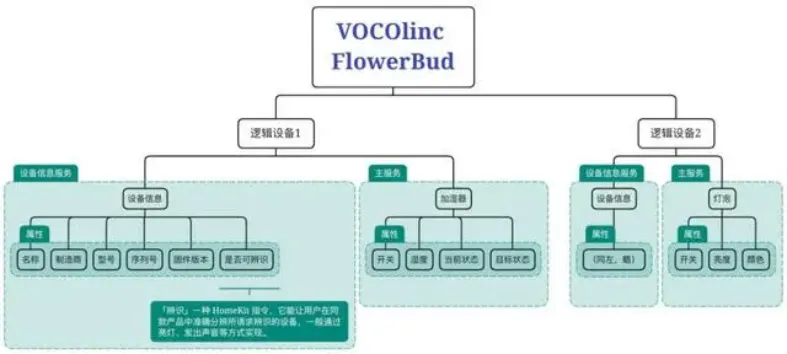 VOCOlinc FlowerBud 香薰机的 HomeKit 逻辑层次(不含私有属性)