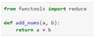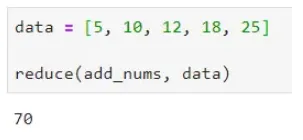 70 是返回的值。从代码实现开始,让我们从 functools 模块导入 reduce 函数并声明一个返回两个数字之和的函数: