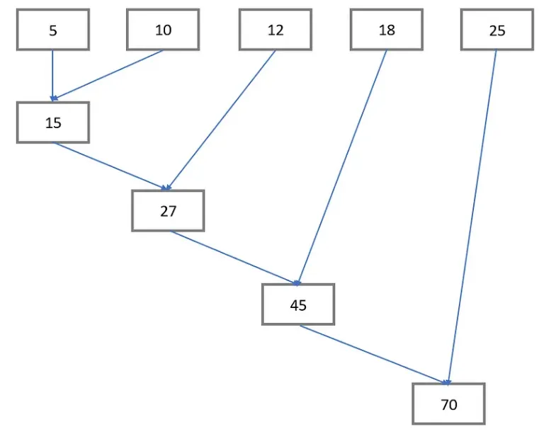 - 5 加到 10,结果是 15