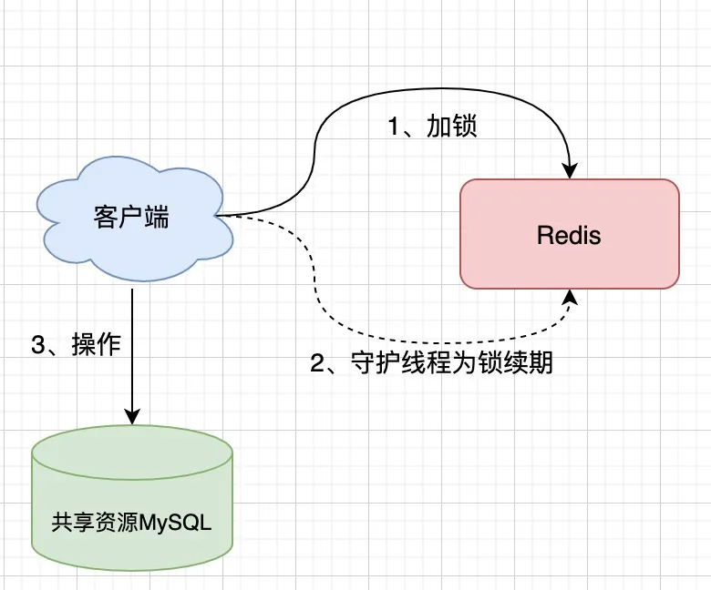前面提到过,过期时间如果评估得不好,这个锁就会有提前过期的风险,一种妥协的解决方案是,尽量冗余过期时间,降低锁提前过期的概率,但这个方案并不能完美解决问题。是否可以设置这样的方案,加锁时,先设置一个预估的过期时间,然后开启一个守护线程,定时去检测这个锁的失效时间,如果锁快要过期了,操作共享资源还未完成,那么就自动对锁进行续期,重新设置过期时间。
