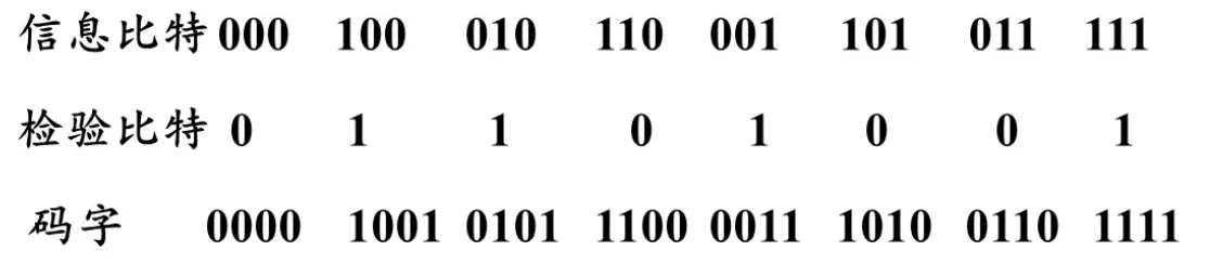 码字由 n 个码元组成, n - 1个信息码元,另一码元为奇(偶)监督码元 **(n, n-1)**奇偶监督码.