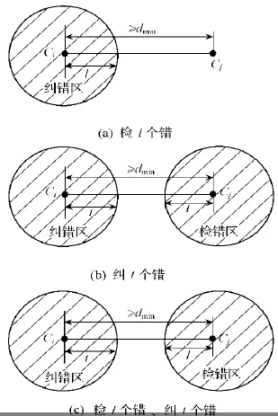 - 纠错能力 t: $d_{\min } \geq 2 t+1$