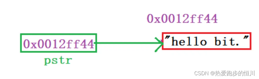 特别容易让同学以为是把字符串 hello bit 放到字符指针 pstr 里了,但是本质是把字符串 hello bit. 首字符的地址放到了pstr中。