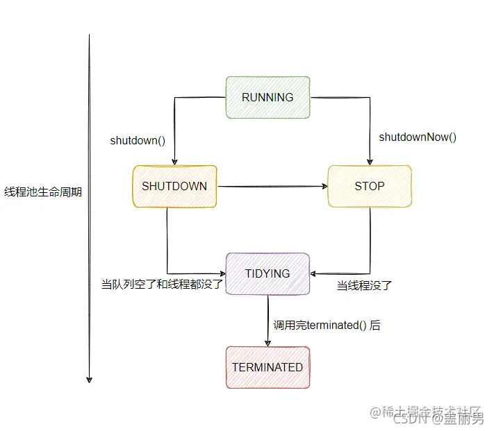 线程的生命周期控制的是线程的执行或者不执行,线程池的生命周期控制的是线程池接收不接收新任务。