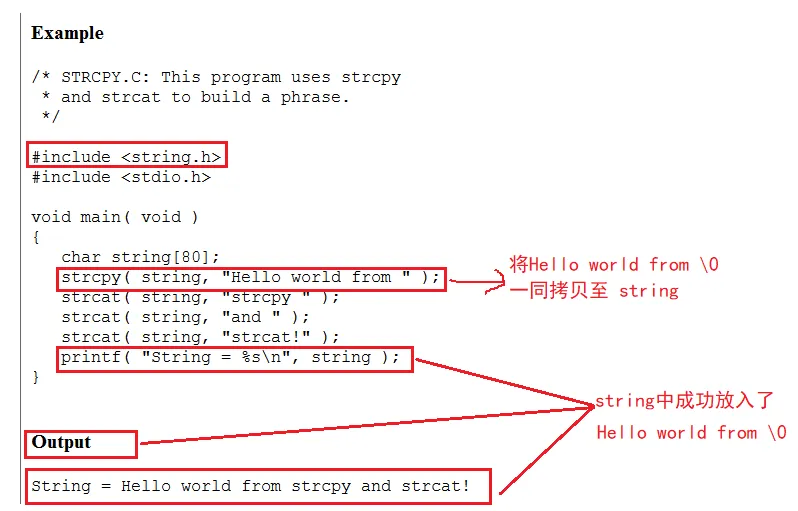 char*strcpy ( char*strDestination, constchar*strSource ); //const表示来源字符串不可以被修改