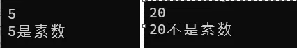 //返回1则为素数//返回0则不为素数intprime_num(intnum) { inti=0; //试除法for (i=2; i<num; i++) { if (num%i==0) { return0; } } return1; } intmain() { intnum=0; scanf("%d", &num); //判断num是不是为素数intflag=prime_num(num); //返回0则表示不是素数if (flag==0) { printf("%d不是素数\n", num); } else { printf("%d是素数", num); } return0; }