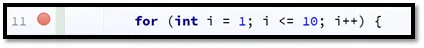 在想要设置断点的代码行,在行号栏的后面单击鼠标左键或者使用快捷键(因电脑而异)。