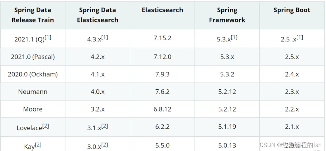 为了避免使用的Elasticsearch版本和SpringBoot采用的版本不一致导致的问题,尽量使用一致的版本。下表是对应关系: