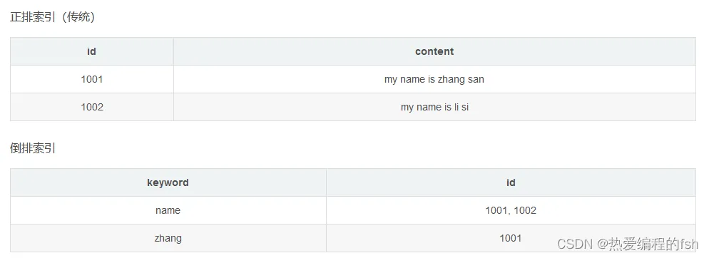 我们知道Java是面向对象的,而Elasticsearch是面向文档的,也就是说文档是所有可搜索数据的最小单元。ES的文档就像MySql中的一条记录,只是ES的文档会被序列化成json格式,保存在Elasticsearch中; 这个json对象是由字段组成,字段就相当于Mysql的列,每个字段都有自己的类型(字符串、数值、布尔、二进制、日期范围类型); 当我们创建文档时,如果不指定字段的类型,Elasticsearch会帮我们自动匹配类型; 每个文档都有一个ID,类似MySql的主键,咱们可以自己指定,也可以让Elasticsearch自动生成; 文档的json格式支持数组/嵌套,在一个索引(数据库)或类型(表)里面,你可以存储任意多的文档。 注意:虽然在实际存储上,文档存在于某个索引里,但是文档必须被赋予一个索引下的类型才可以。