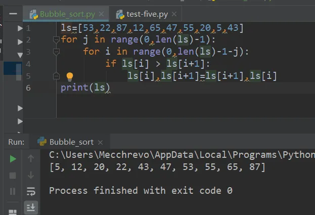 冒泡排序的代码实现并不难,对于初学者来说只需要注意循环次数这个坑就行。不难发现,冒泡排序的代码实现需要两层循环才能实现。