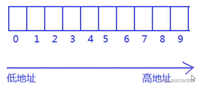 我们发现确实如此,第一段代码是10个整形元素的数组的长度,第二段代码相差的是整个数组的地址,就像这样: