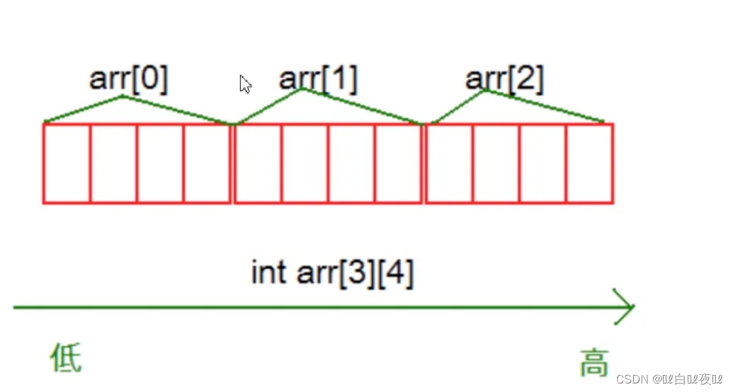 //数组初始化 int arr[3][4] = {1,2,3,4,5,6,7,8,9,10,11,12}; int arr1[3][4] = {1,2,3,4}; int arr2[3][4] = {{1,2},{4,5}}; int arr3[][4] = {{2,3},{4,5}};//二维数组如果有初始化,行可以省略,列不能省略 int arr4[][4] = {1,2,3,4,5,6};