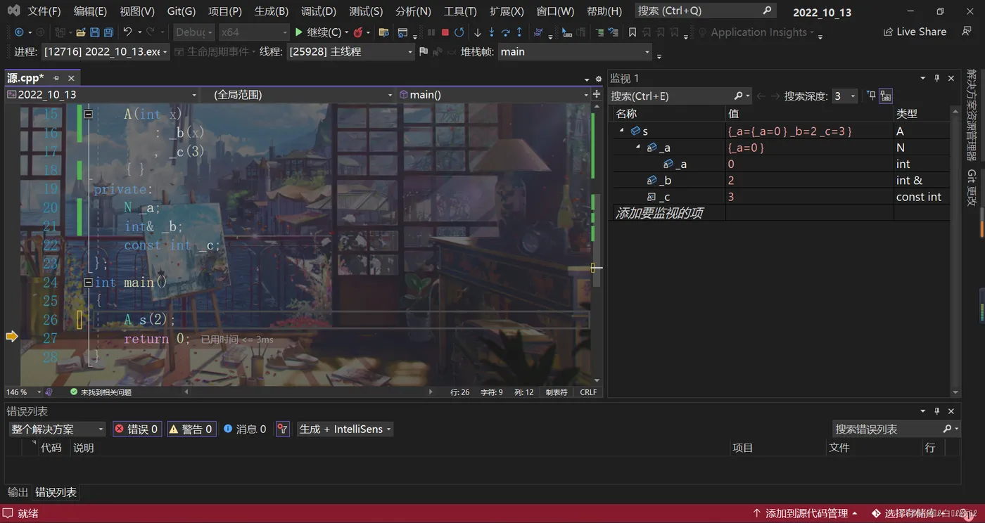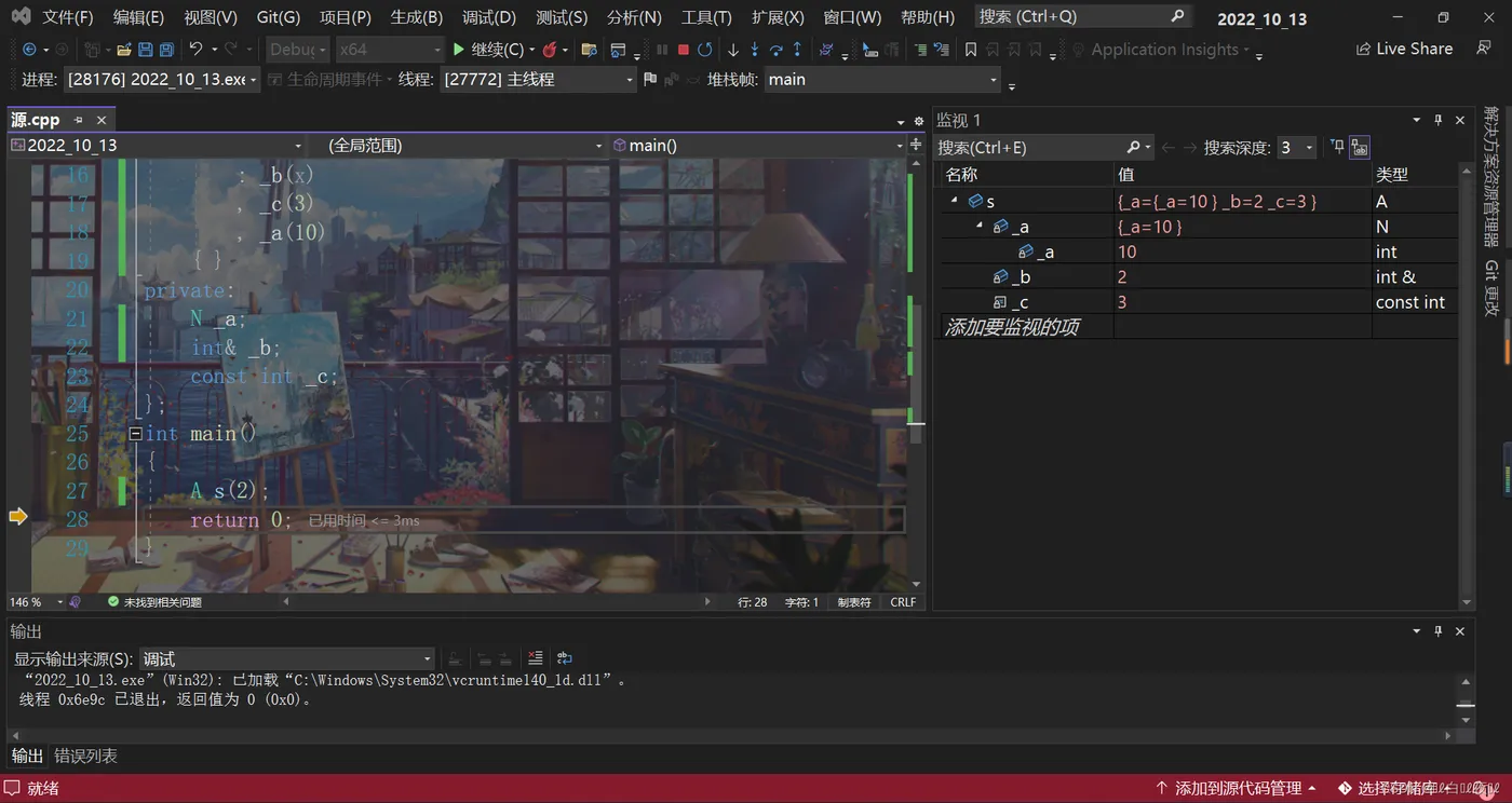 #include <iostream> using namespace std; class A { public: A() { _a = 10; _b = 20; _c = 30;//这个成员是无法被改变的 } private: int _a; int _b; const int _c;//const属性的变量必须要初始化 }; int main() { A s; return 0; }