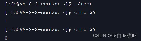 echo $?是查看最近进程的退出码,上一个写的进程退出码是1,再查一次就是echo $?的退出码,是0.