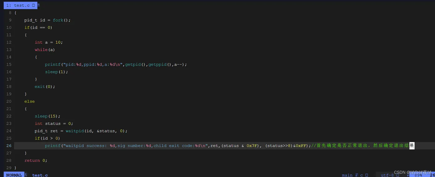 WIFEXITED(status): 若为正常终止子进程返回的状态,则为真。(查看进程是否是正常退出)