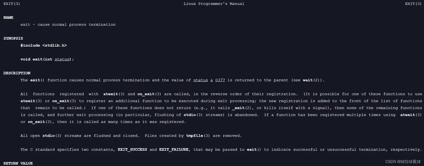 这也就代表一个程序的退出,至于为什么要写return 0,而不是返回其他的,亦或者是不写都可以,因为返回uid这个数字是退出码,0是正常退出的意思,因为正确只有一个,不会管你怎么成功,但是失败就会找失败的原因再去改正。