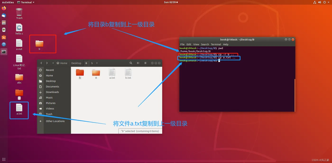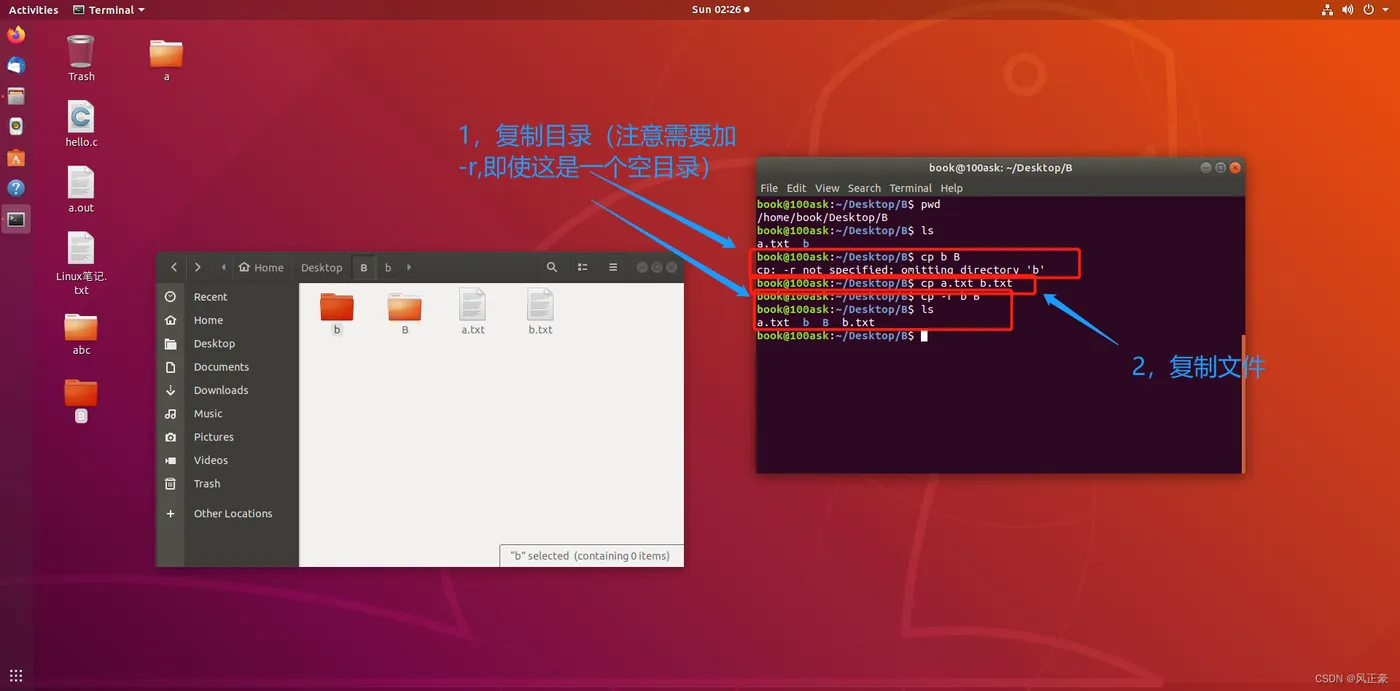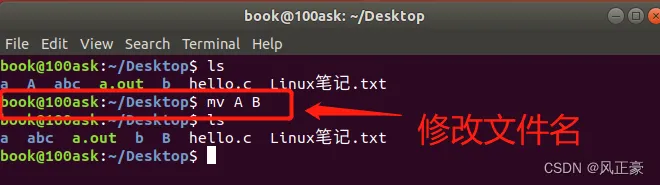 通过上面这两张图,我们会发现,mv的移动文件和修改文件名字的操作似乎是一样的,如何区分呢?其实很简单,如果 要修改后的名字或者移动到的路径这一部分如果是路径(./B这种),那么就是移动,否则为改名。