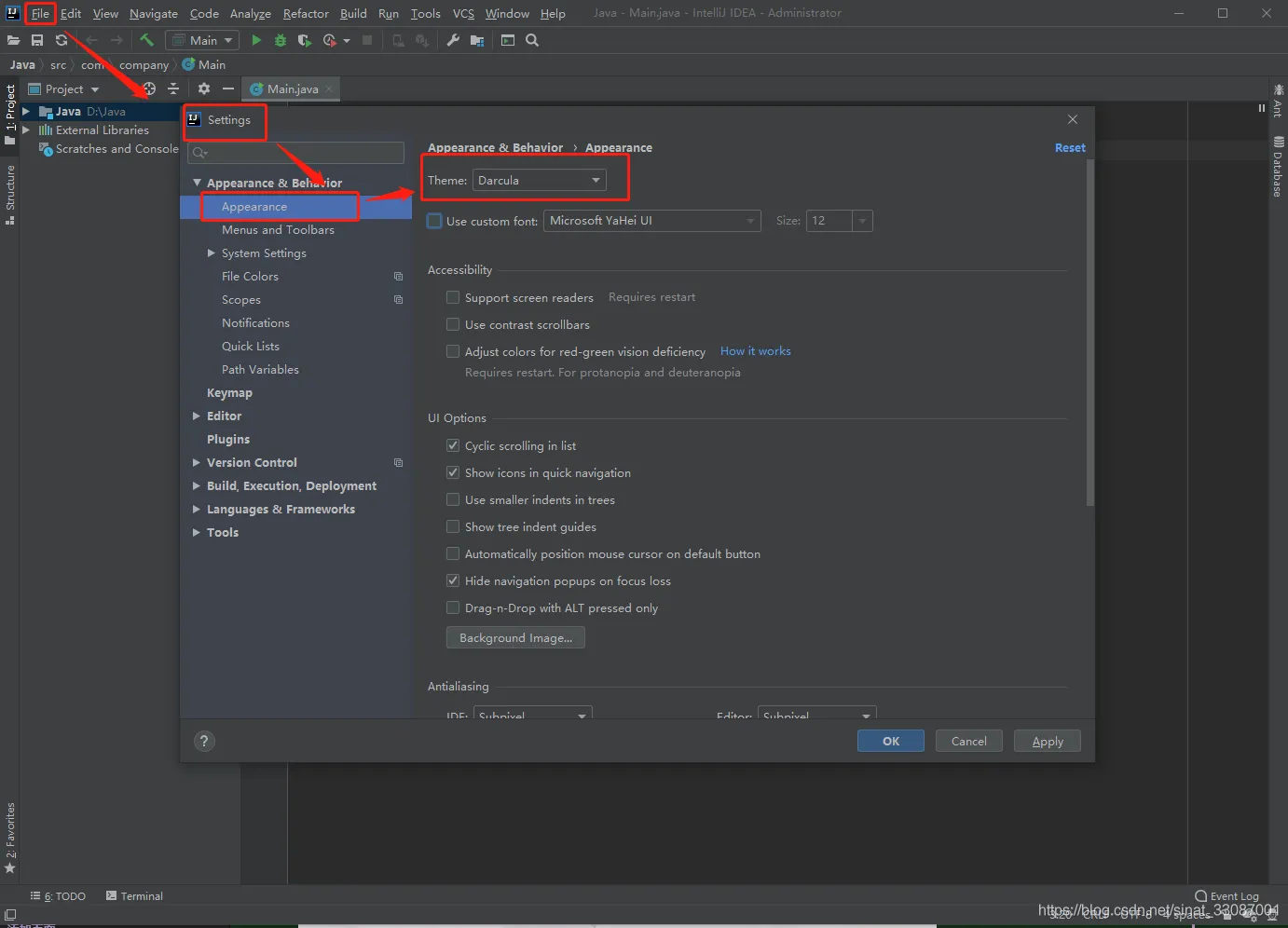 1,更改主题颜色,个人还是比较喜欢黑色的