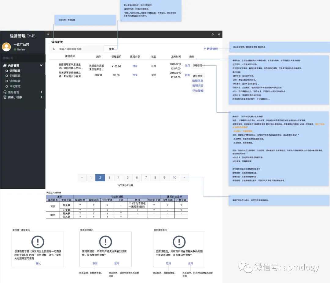 在评审前,记得把手绘原型图替换为带标注的UX。虽然你更新起来会比较麻烦,但是对开发团队来说,阅读十分方便。下图是我几年前做的一个后台系统的交互及标注,供参考。