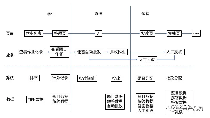 以上图的在线写作业为例。建议新手产品经理一定要先做加法,尽量罗列相关的功能。我就不按照标准的用户故事格式写了,感兴趣的读者可以自行练习。