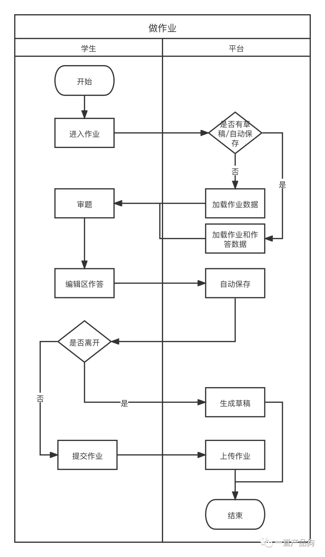 - 次要功能:自动保存(P1)、作业草稿(P1)、空白题目提示(P2)