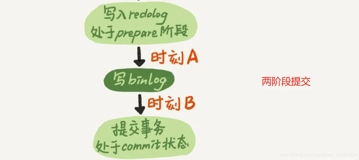 - 写完redo log 预提交,并且写binglog过程中,机器挂了,则判断【时刻B】