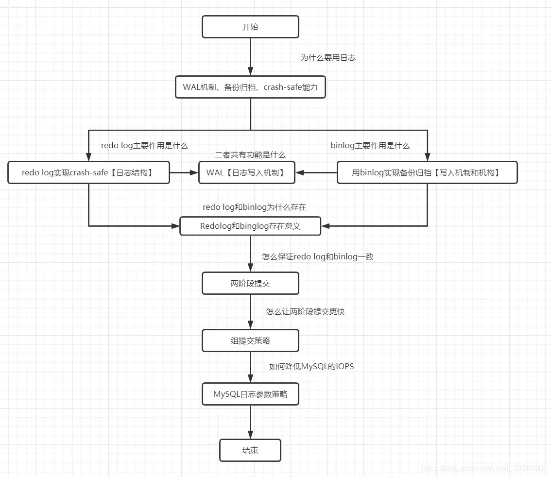基于前两篇blog对【MySQL数据库原理 二】MySQL日志系统与事务和【MySQL数据库原理 三】MySQL如何保证数据安全可靠对日志系统做一个串联性的描述,从为什么需要使用开始讲起一直到日志是如何满足MySQL的安全可靠的。为了方便把前面的知识串联起来,我画了一个流程图: