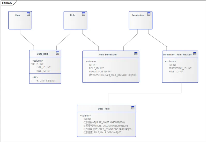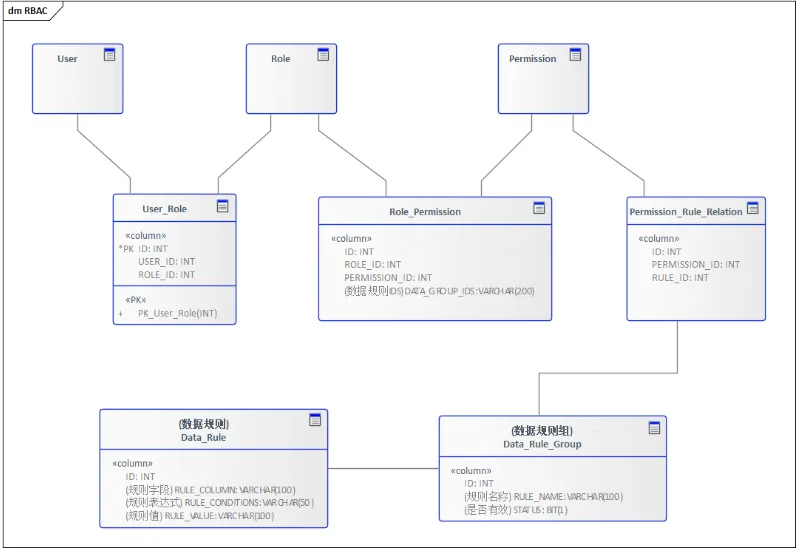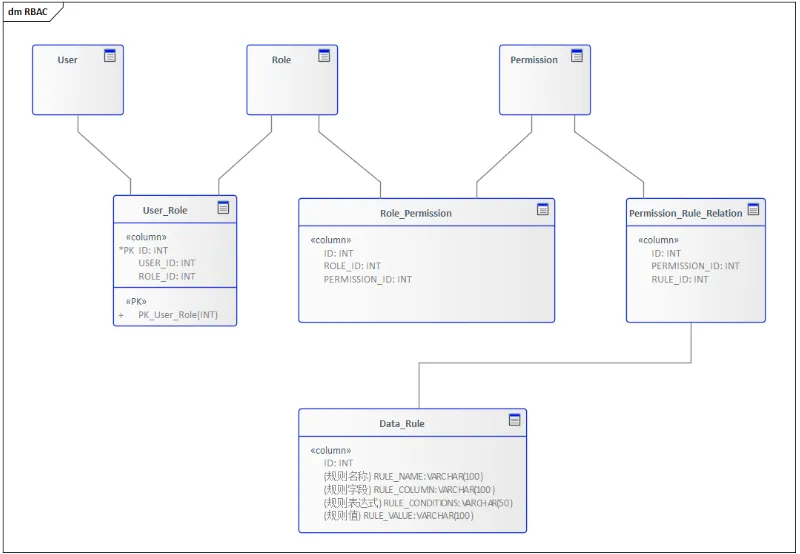 在RBAC模型中,用户是通过授予不同的角色来进行资源的管理,同理我们可以让角色在授予权限的时候关联上数据规则,这样最终在系统上就体现为不同的用户拥有不同的数据规则。