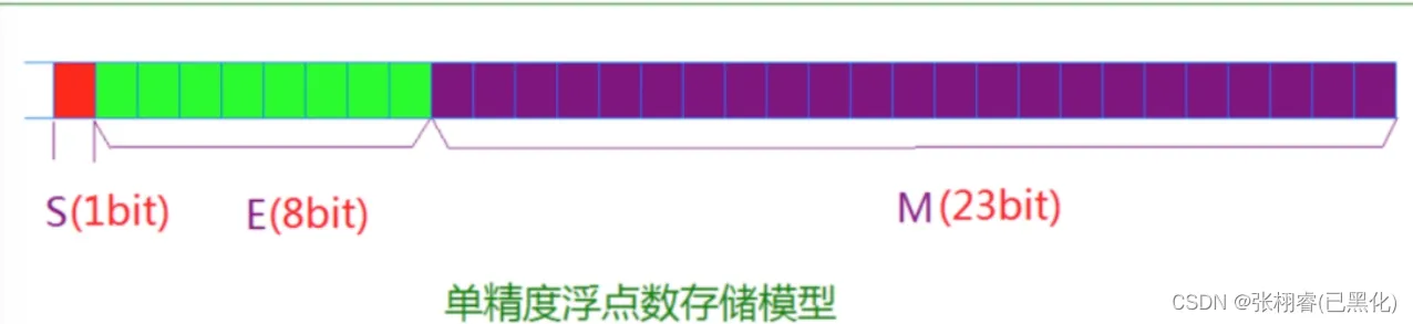 对于32位的float型浮点数,最高的1位是符号位s,接着的8位是指数E,剩下的23位为有效数字M。