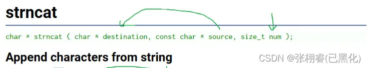 从源字符串的第一个字符开始往后数num个字符追加到目标空间的后面,外加一个终止字符。