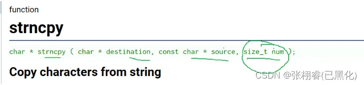 如果源字符串的长度小于num,则拷贝完源字符串之后,在目标的后边追加0,直到num个。