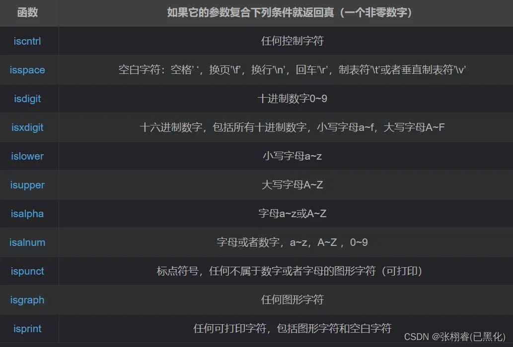 上面是字符串相关的函数,下面是一些字符分类的函数: