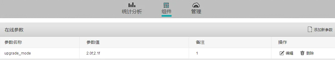 配置在线参数,参数值配置规则:版本号,强制更新标志,版本号,强制更新标志,版本号,强制更新标志...