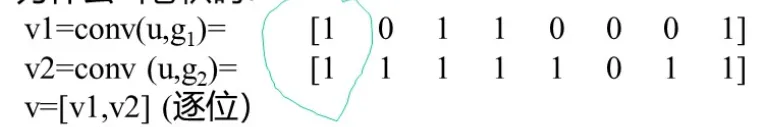 描述编码器的一种方法是指定n个连接矢量,每个矢量对应于一个模2加法器。每个矢量都是L维的,表示该模2加法器和编码移位寄存器之间的连接。矢量中第i位上的1表示移位寄存器相应级与模2加法器连接,若是0,则表示相应级与模2加法器之间无连接。