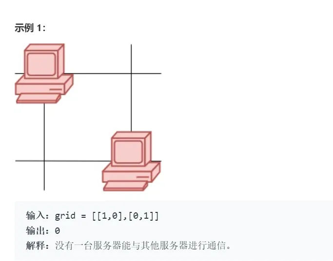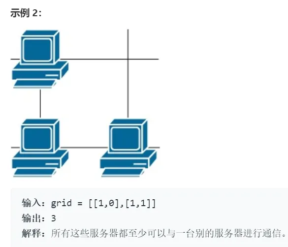 这里有一幅服务器分布图,服务器的位置标识在m*n的整数矩阵网格grid中,1表示单元格上有服务器,0表示没有。