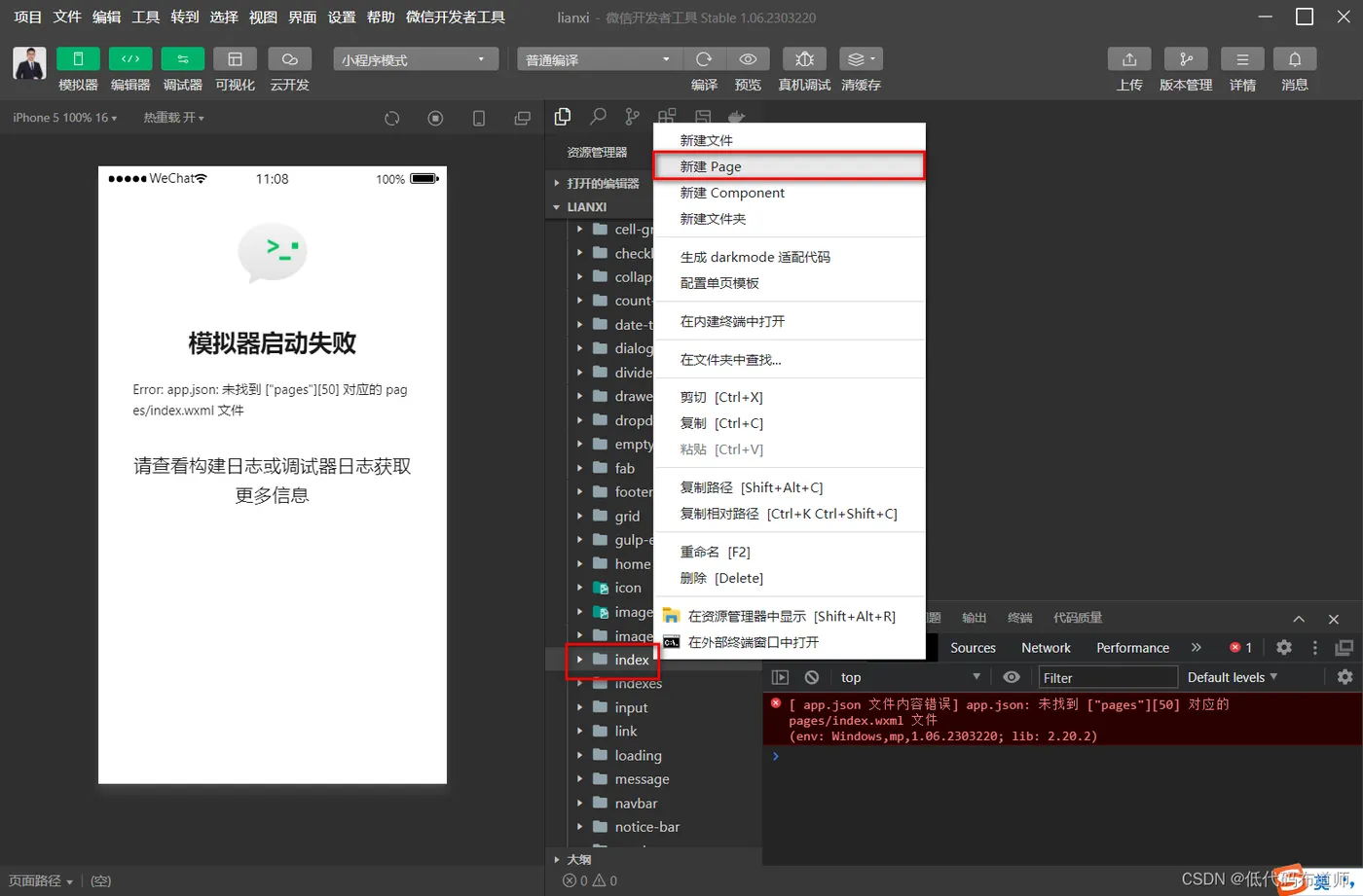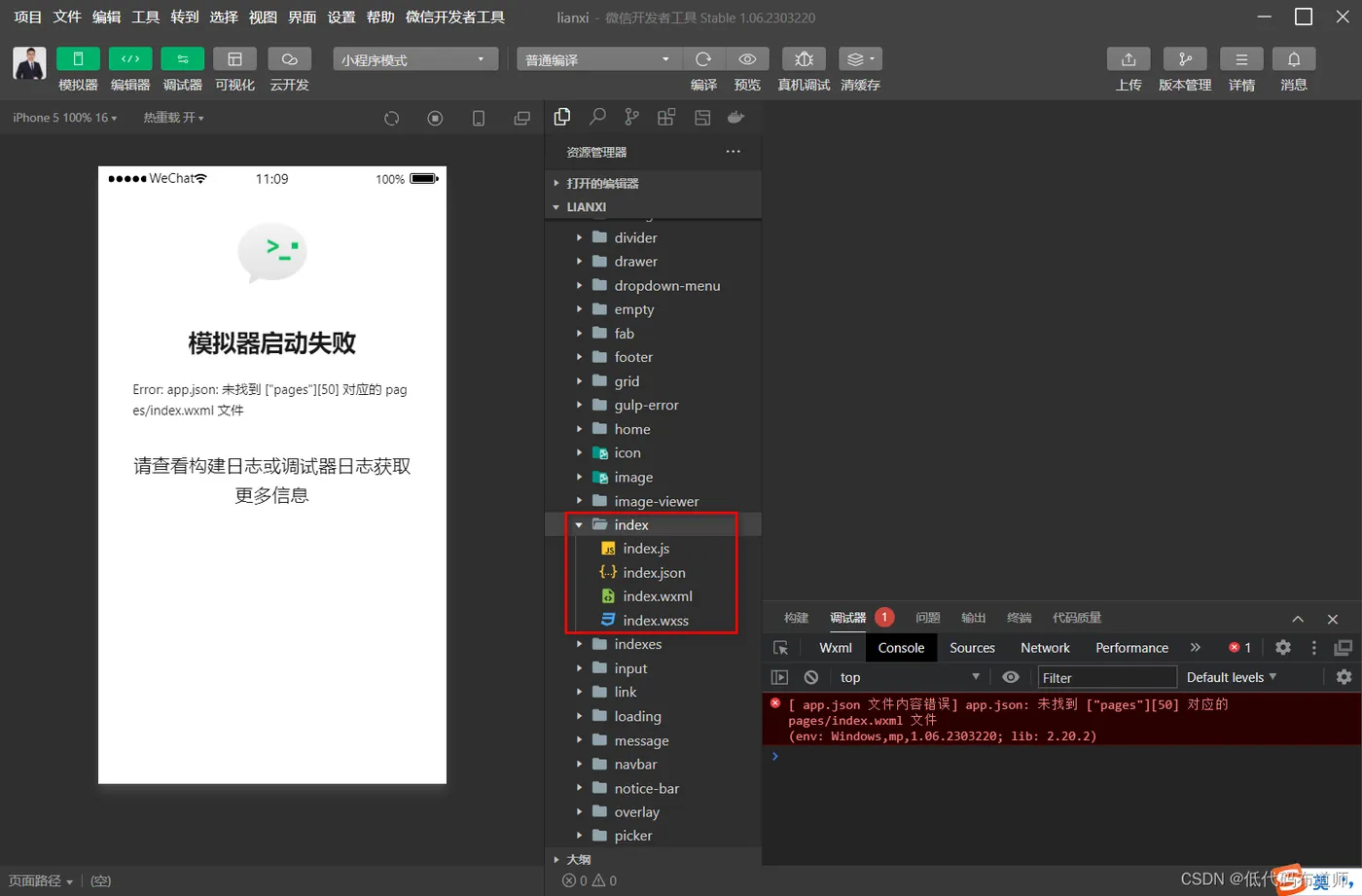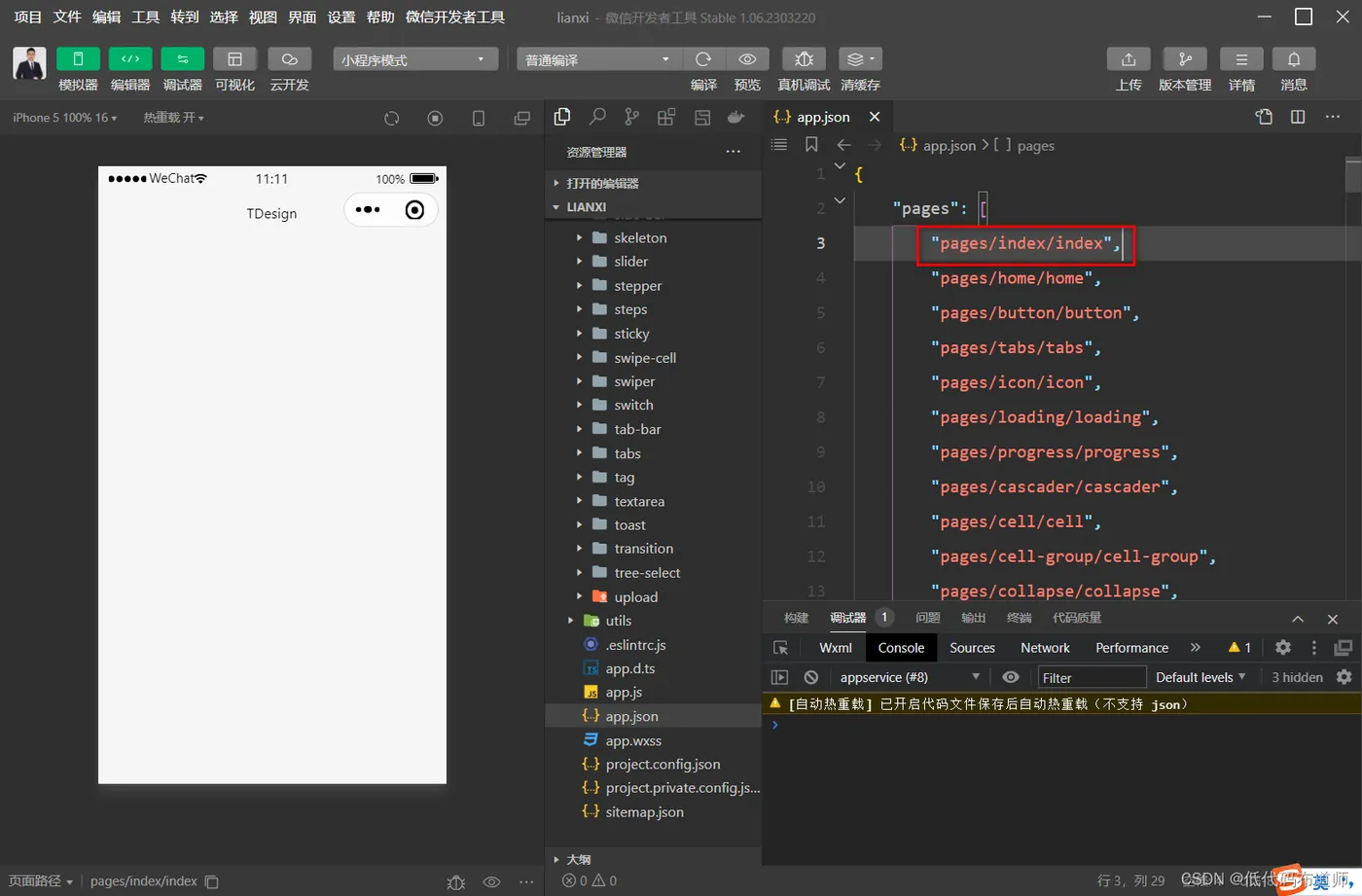 然后我们去app.json里调整一下页面的顺序,将index放到第一个位置