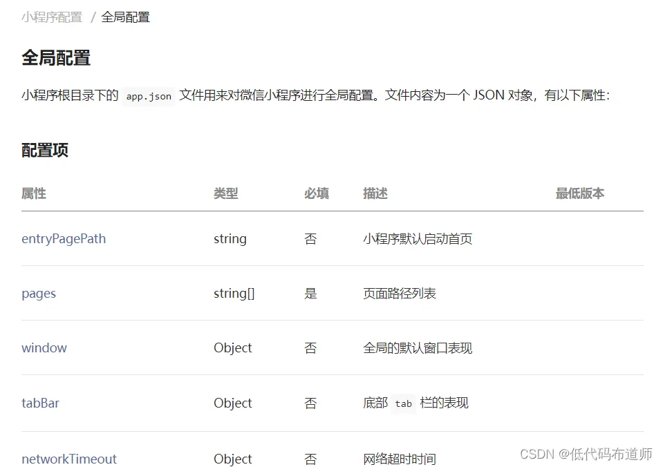 要学习一套模板,我们就要从头开始阅读代码,那从哪个位置开始看起呢?首先是要先阅读微信小程序的入口文件。入口文件是app.json,这个配置文件是我们程序的全局配置文件,具体的配置项可以参考官方的文档