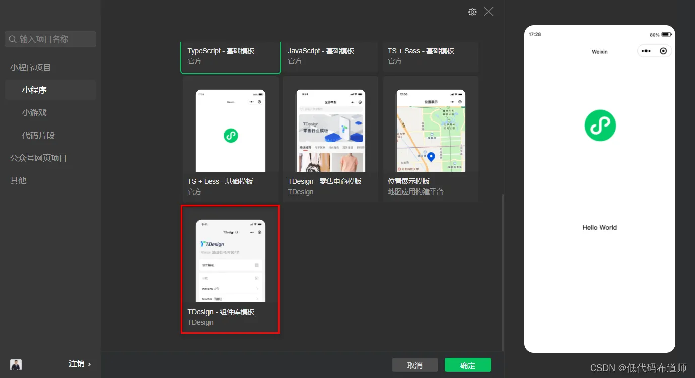 打开微信开发者工具,在新建项目的时候,选择官方提供的模板
