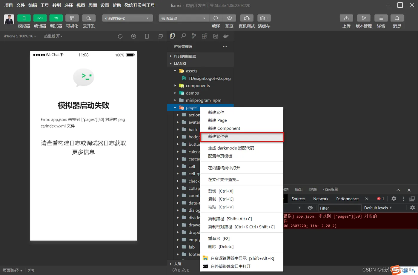 创建页面的方法是先选中pages目录,右键,创建一个文件夹