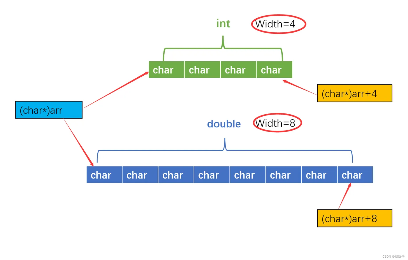 1.要先将arr强制类型转化为char*,因为一个字节是类型的最小单位,这时width就发挥作用了.