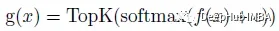 这里的f(.)为路由线性变换。ε为高斯噪声。当K<<E时,g(x)的大多数元素为零。