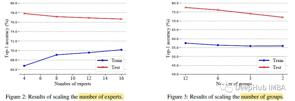 专家越多(可训练参数)导致过拟合,尽管专家越多意味着建模能力越强。更少的路由操作时,会有明显的性能下降。