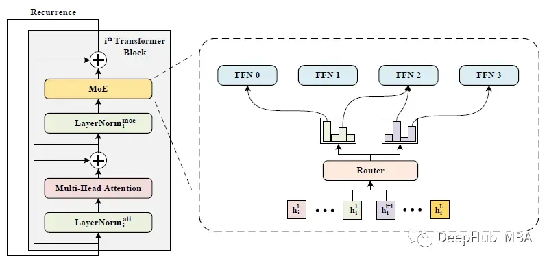 WideNet采用跨Transformer块的参数共享来提高参数效率,采用MoE层来提高模型容量。WideNet在不同的Transformer块中使用相同的路由器和专家。