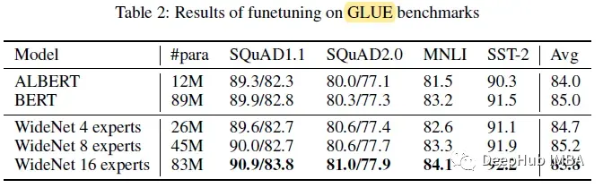 有了更多的专家,WideNet的表现远远超过ALBERT。