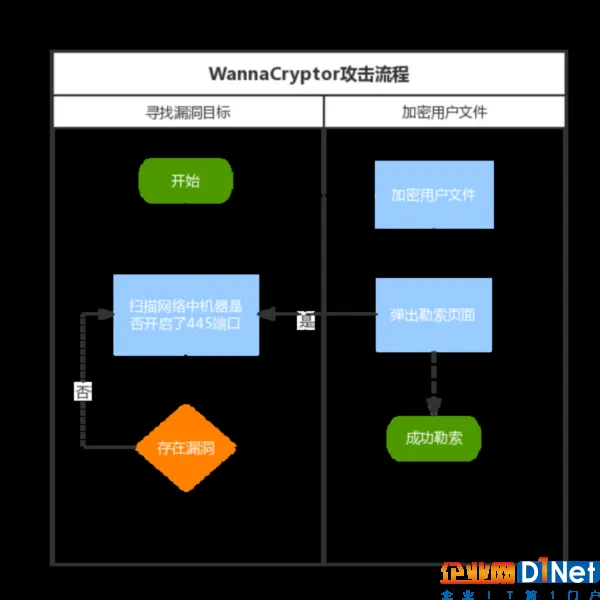 首先我们看一下,攻击者利用该漏洞,向用户机器的445端口发送精心设计的网络数据包文,实现远程代码执行,攻击流程如下: